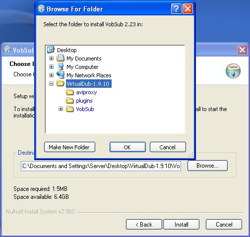 2. Extrak softwere Vobsub yang telah anda download tadi, ingat anda harus memberikan ceklis VobSub for VirtualDub dan TextSub for VirtualSub and Avisynth, lebih lengkapnya lihat gambar dibawah ini :